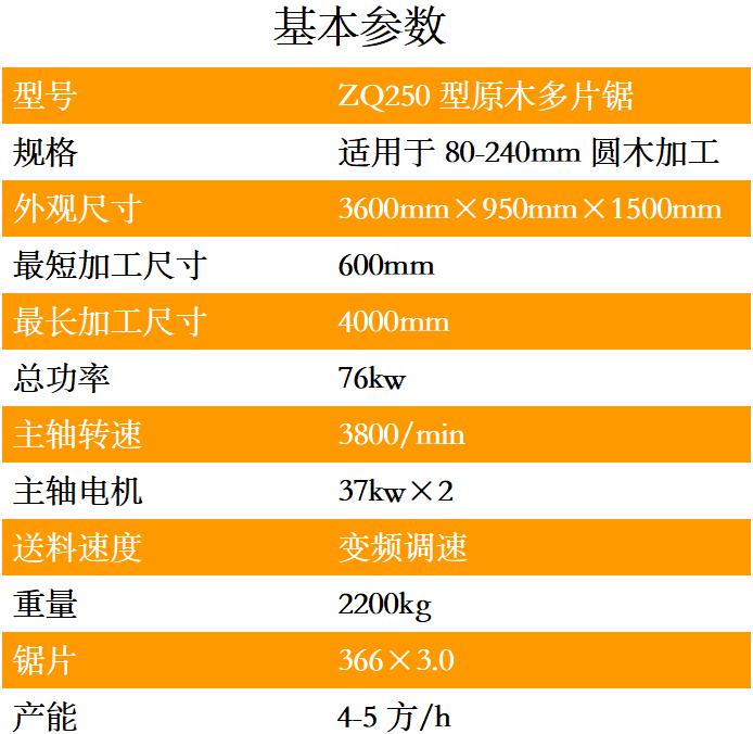ZQ250型多鋸片是一種用于原木的開破以及分片的高性能專用機(jī)械,