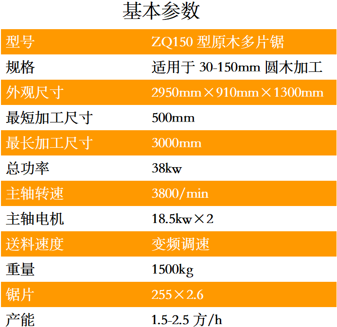 ZQ150型圓木多片鋸鋸 片:選用德國高品質進口鋼板做底板的鋸片,耐熱、耐磨、不易變形。