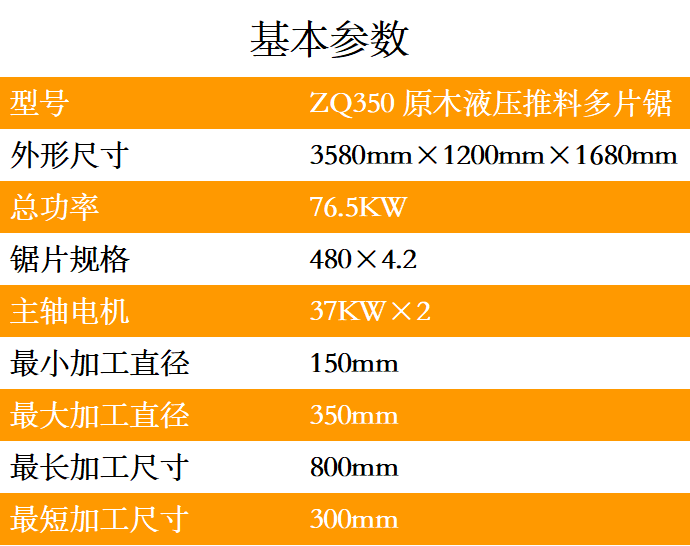 ZQ350型圓木液壓推料多片鋸用于圓木的開破或全開的加工,采用液壓控制導航送料,大小木材可自選式精密加工,操作安全,靈活,穩定易用,產品精密美觀,出材率高