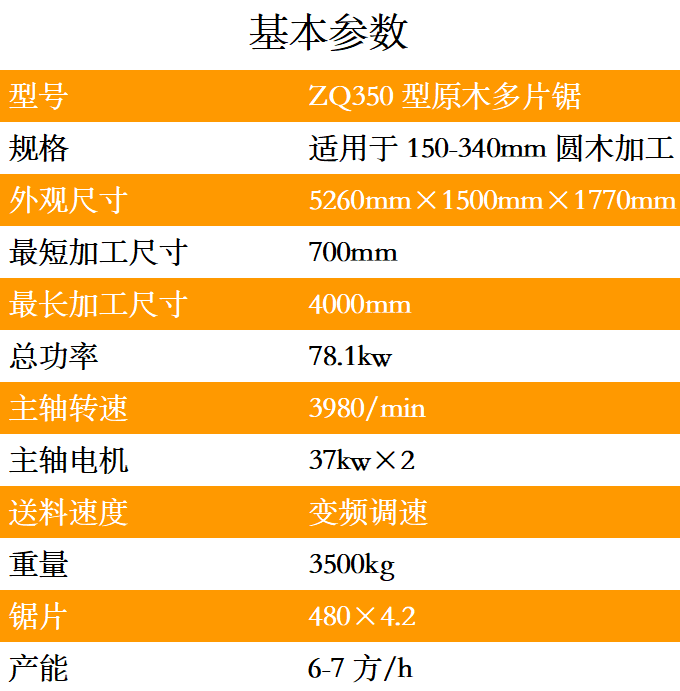 ZQ350型原木多片鋸是一種用于原木的開破以及分片的高性能專用機械,可根據客戶要求訂做各種規格的木板,提高木材的最大利用率