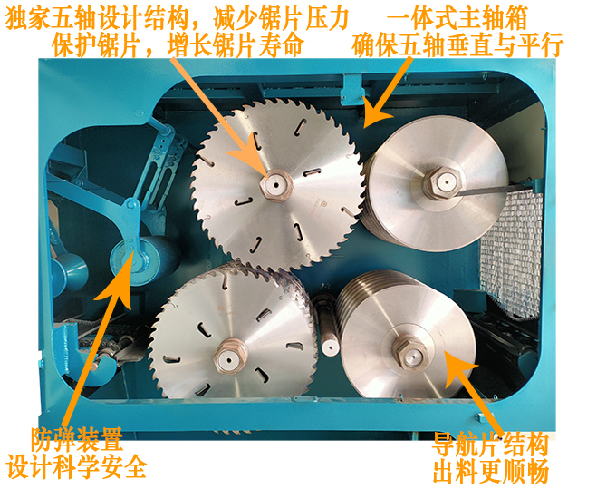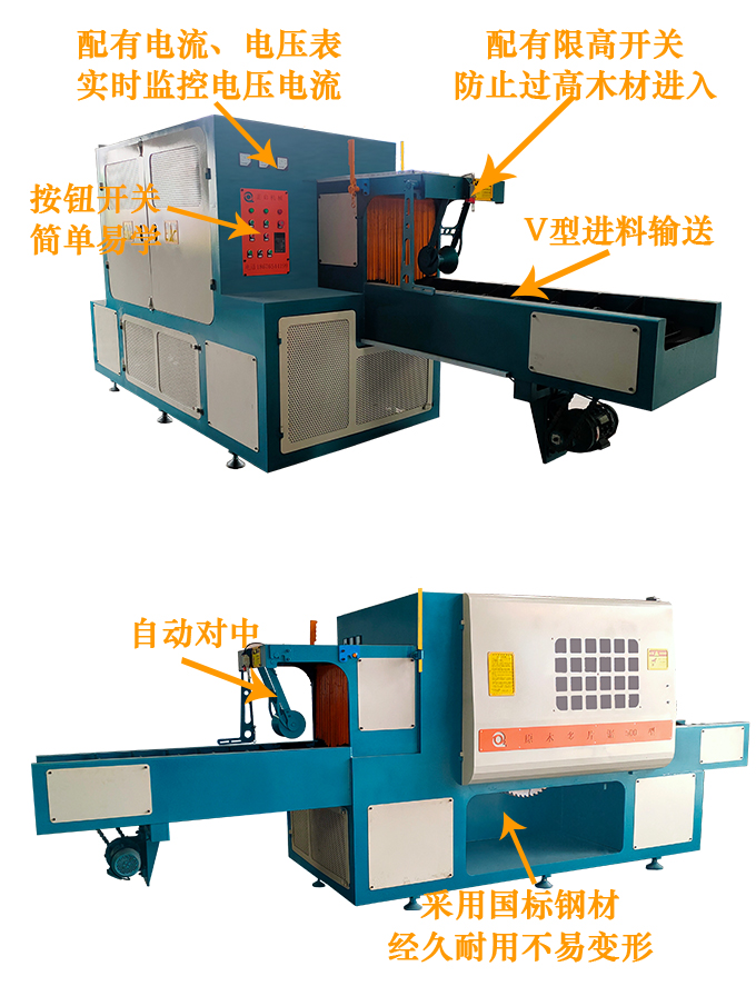 料:采用優質鏈條輸送,機上配有的變頻智能調速器,可以對大小木料的進料速度實行自由調速。原木可以實現自動分中,機上還配有限位開關,防止超去規格木料進入,防止卡木避免對機器造成損壞。
