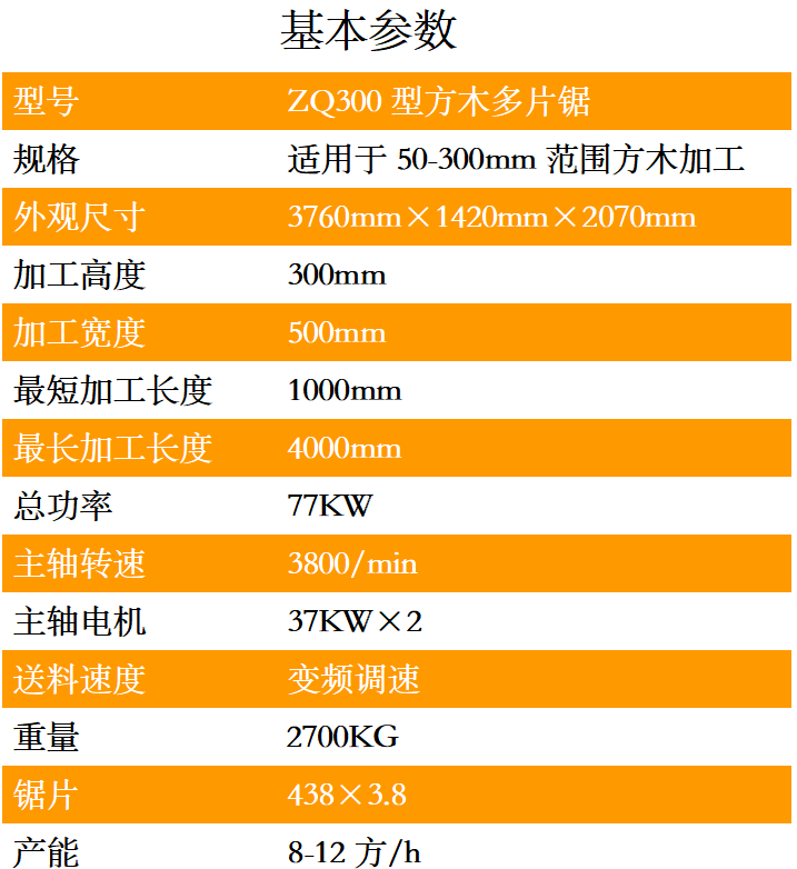 1.ZQ300型方木多片鋸采用獨(dú)立5條滾軸傳動(dòng)設(shè)計(jì),可以保證同一個(gè)平面線上,送料平穩(wěn)。