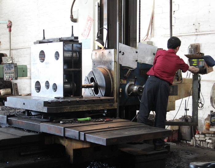 機械的整個主軸箱采用12厚的鋼板焊接成型