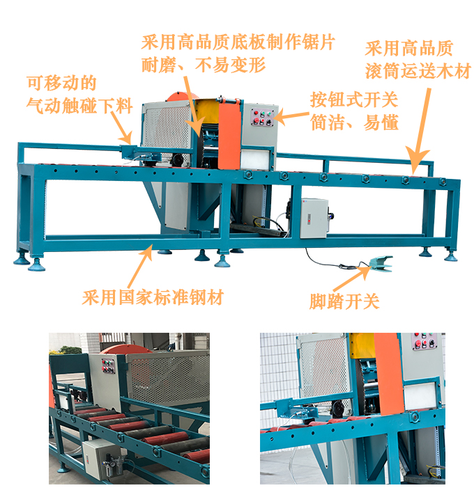 新廠地址:佛山市南海區獅山鎮羅穆路塘頭新工業園15號(塘頭牌坊對面)半自動截斷鋸是一種用于截斷圓木的專用機械,可取代傳統的斷木設備。本機是左右鋸設計,只需一名普通工人便可輕松操控,穩定性高,加工表面平整光潔,截斷范圍可在100mm-30mm直徑木材。進料速度可根據實際所需隨意調節,效率高,是傳統截斷機的2-5倍。鋸片配進口合金鋸片,使用壽命長.適用于原生木材,板材板方的切斷加工.本設備是采用腳踏開關的半自動截斷鋸,具有操作簡單,安全,效率快,切斷長度在100mm-1200mm范圍隨意設定,省時省工,大大減輕操作者勞動強度等優點.