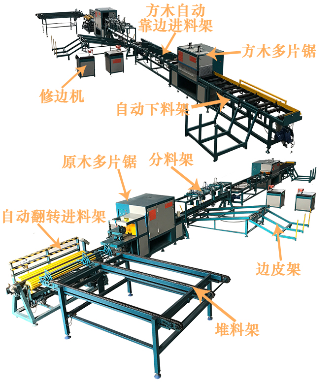 全自動多片鋸生產線方案一該多片鋸全自動生產線方案集合了正啟機械系列成熟產品,性能穩定效率高,極大的節約人力成本,為企業帶來強勁、穩定、持久的生產力。全自動多片鋸生產線帶自動堆料架、自動翻轉進料架、原木多片鋸、分料架、邊皮架、方木自動靠邊進料架、方木多片鋸、修邊機、自動下料架等正啟機械系列成熟產品,完全可以滿足木材加工的生產需要,是企業做大做強的助力器。